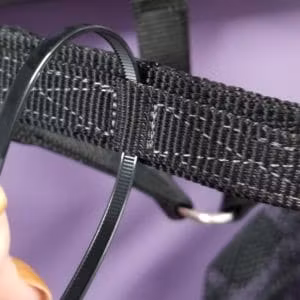 Betesmasken monteras enkelt på grimman med hjälp av de medföljande buntbanden.